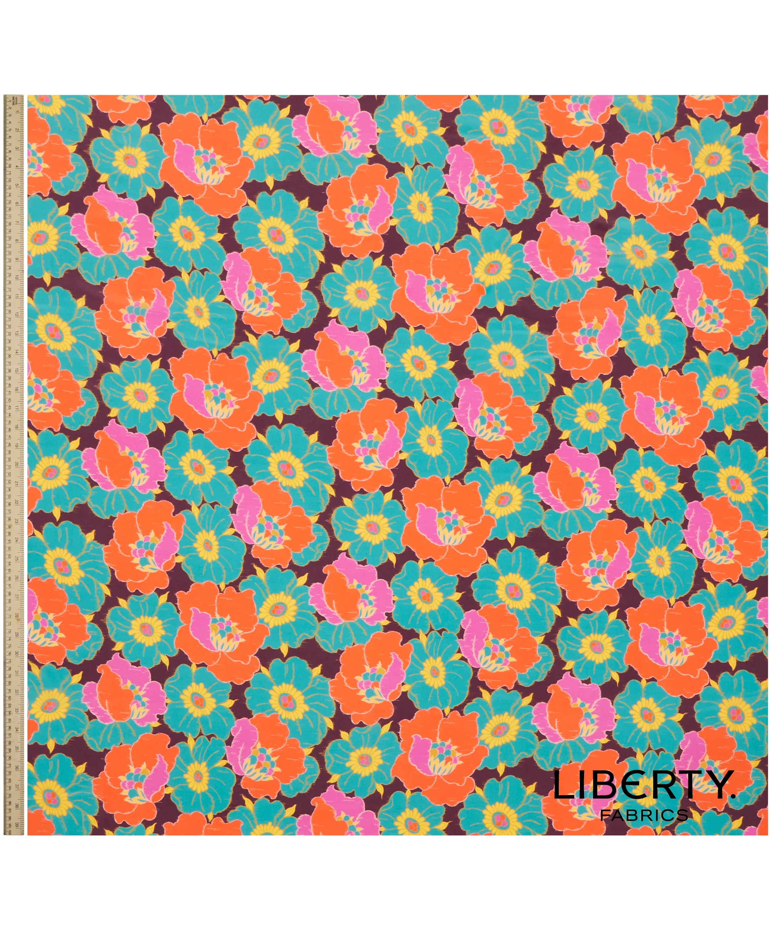 Stylised flower heads bloom in unison within this archival Liberty print from 1972. Redrawn in bright fresh palettes, its distinct outlines feature a subtle ikat effect – adding a touch of softness to the graphic anemone petals.